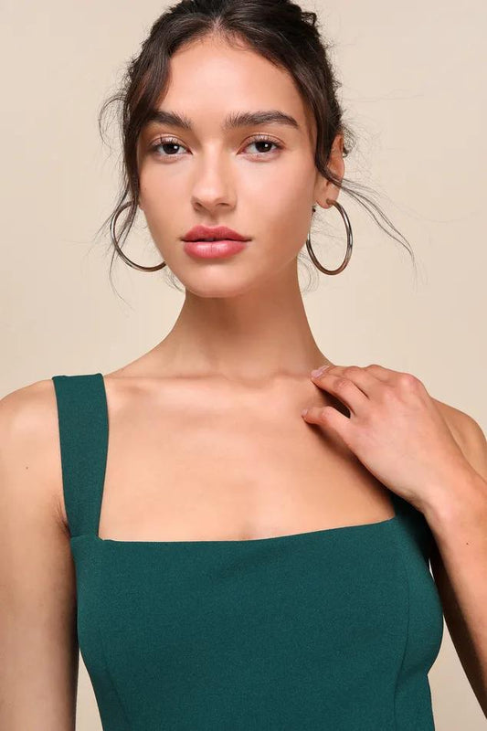 Social Sensation Emerald Green Square Neck Mini Bodycon Dress